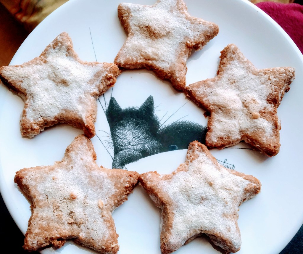 Préchauffez votre four à 170 degrés. Pour la cuisson, il faudra être attentif. La recette dont je me suis inspirée indiquait 20 min mais au bout de 11 minutes j’ai pu retirer mes sablés (mon four chauffe vite et fort). Il faut surveiller que le glaçage ne se colore pas. Les étoiles doivent rester moelleuses.
