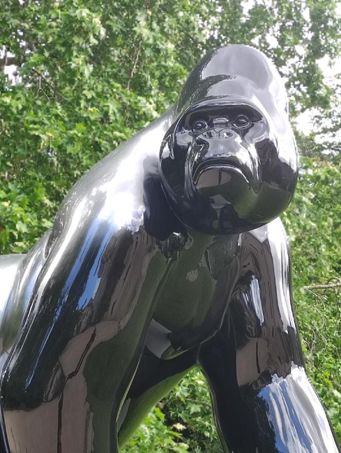 Le Gorille de l’Ouest, représenté par deux statues : le Dominant et le Dos argenté, est une espèce proche de la disparition.