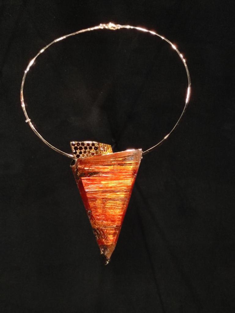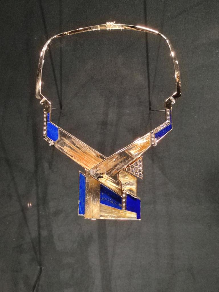 Il est difficile de choisir un bijou préféré dans l’ensemble de son œuvre tellement ils sont nombreux, souvent de formes inattendues mais toujours un ravissement des yeux. Mais nous nous sommes pliés au jeu demandé par l’Ecole des Arts Joailliers et c’est le collier en quartz rutilé qui remporte les suffrages.