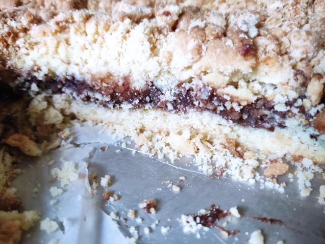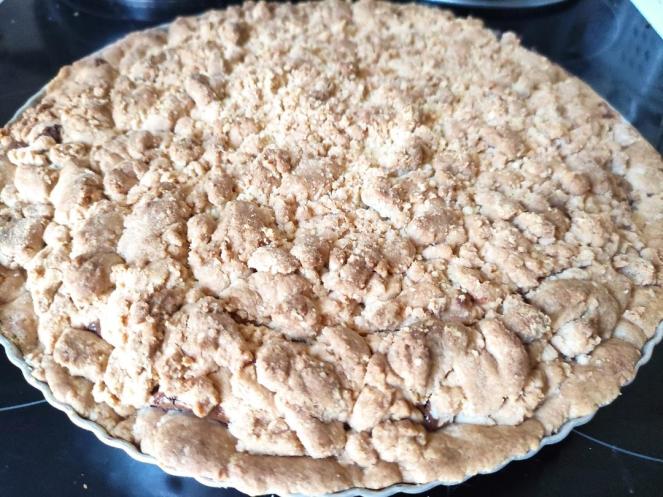 Ajoutez l’autre moitié de la pâte en l’émiettant grossièrement pour donner l’aspect crumble.