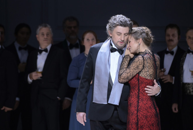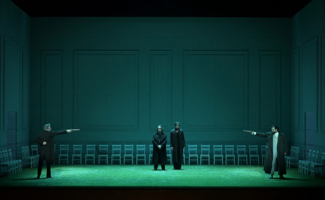 Jean-François Borras est un Lenski magnifique : le poète est tout en retenue mais faisant passer les émotions avec facilité :que ce soit dans ses élans amoureux ou lorsque il est mortifié par l’attitude de son ami. Le ténor sera applaudi lors de son solo ‘Kouda Kouda’ où il est brillant. Jean-Sébastien Bou est un Onéguine tout en puissance, sa partition met en valeur cette ampleur dont il dispose naturellement. Notre coup de cœur sera pour Jean Teitgen qui avec sa superbe voix de basse est un Prince Grémine totalement convaincant et charmant.