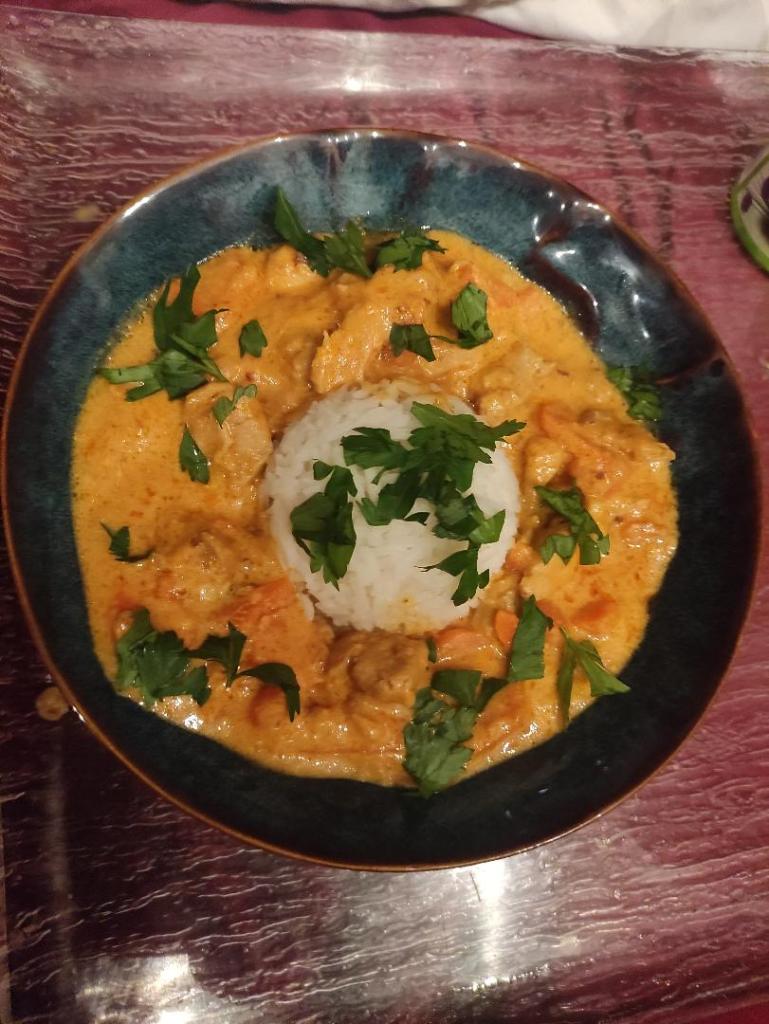 Goutez et rectifiez l’assaisonnement : vous devez sentir à la fois, le gout du curry, de la cacahuète, un léger picotement du piment et la douceur du lait de coco.