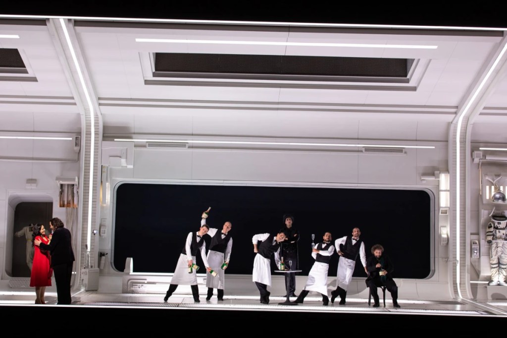 A l’Opéra Bastille, vous pouvez décoller à bord de la navette Bohème à destination de l’espace et du passé pour revivre une mélancolique histoire d’amour. La fusée de Claus Guth est de retour sur le plateau où elle avait fait sensation en 2017 lors de sa première apparition scandalisant le public comme jamais. La romantique histoire de Mimi et Rodolfo revue à la sauce spatiale divise encore le public mais avec nettement moins de virulence cette année. Coincés dans un vaisseau spatial en perdition, Rodolfo et ses amis se remémorent le passé avec nostalgie avant de mourir. Quand le rideau se lève et laisse découvrir l’intérieur d’une capsule spatiale (décor grandiose d’Etienne Pluss), nous pensons immédiatement à des films de science fiction comme 2001, l’odyssée de l’espace.