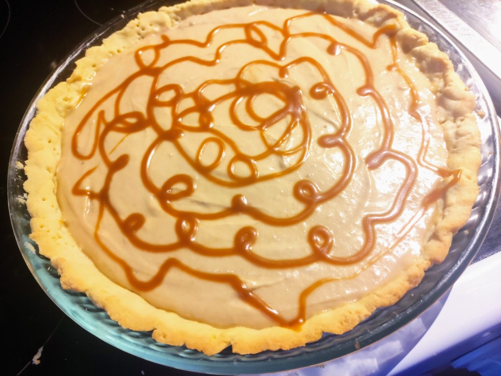 Une fois le fond de tarte cuit et refroidi, ajoutez la pâte à la banane et laissez prendre au frais au moins une heure avant de servir. Décorez avec le reste de caramel ou des copeaux de chocolat selon votre envie.