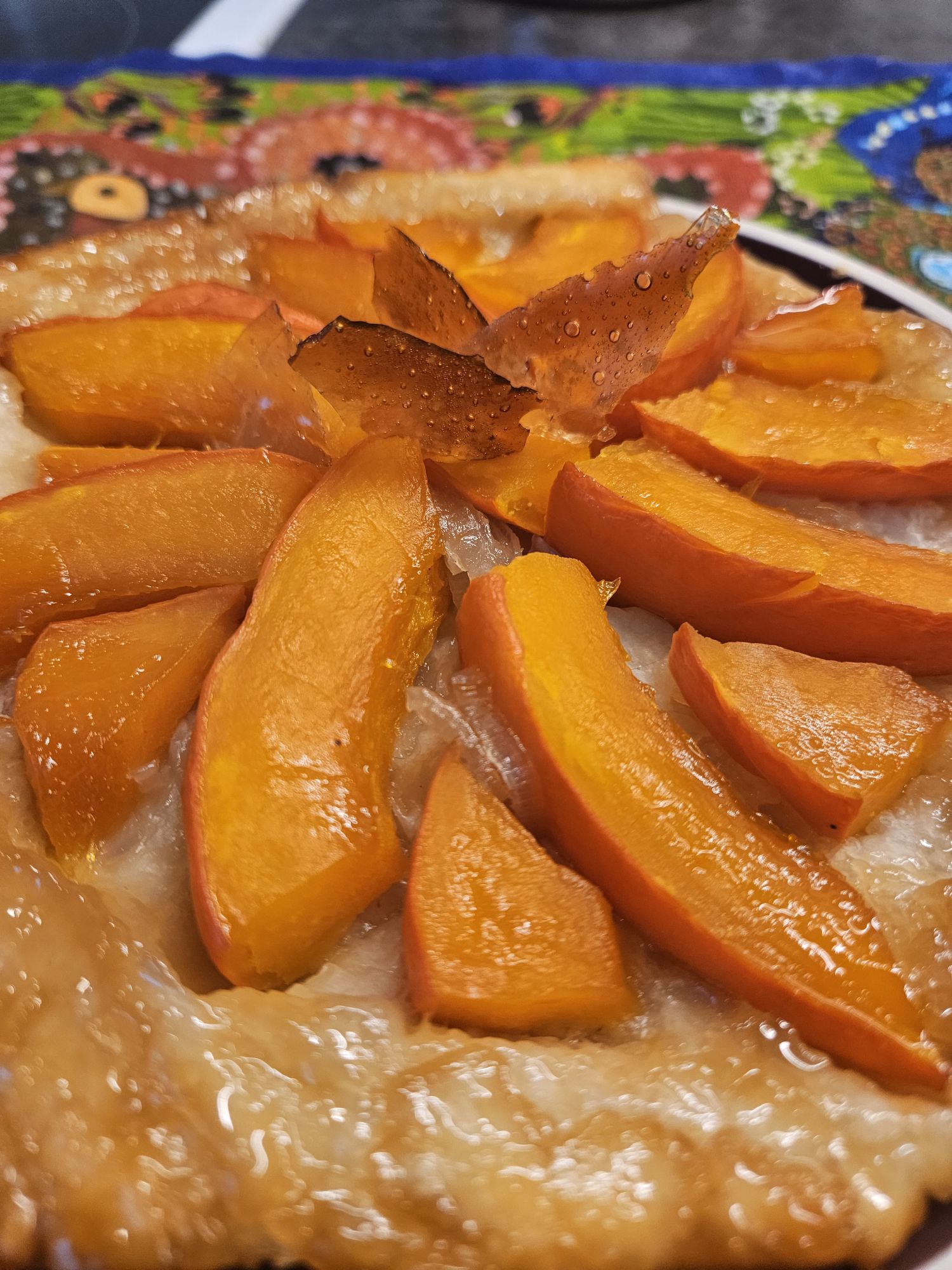 - Des tranches fines de potimarron (version sucrée) ou butternut (pour une version sucrée ou salée) coupées en croissant