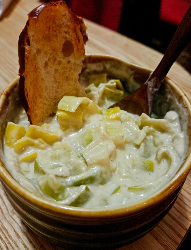 Faites suer le mélange à feu moyen pendant 2/3 minutes puis ajouter le verre d’eau, couvrez. Laisser cuire 8 à 10 min, le poireau doit être tendre. Ajouter la crème de coco et le curry et mélanger, toujours à feu moyen.