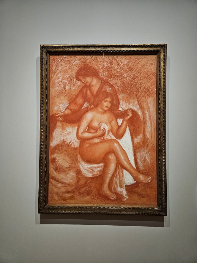 Contrairement à ce que l’on pourrait croire, Renoir n’a jamais cessé de manier crayons, fusains et autres pastels. Son fils Jean rapportait d’ailleurs qu’il ne laissait « jamais passer un seul jour sans griffonner quelque chose ». Pourtant, ces feuilles sont restées dans l’ombre de ses toiles éclatantes, formant un pan méconnu de sa production. Le parcours proposé couvre six décennies de création, depuis ses années d’apprentissage dans un atelier parisien jusqu’à ses derniers jours sur la Côte d’Azur. On y découvre un artiste qui a exploré avec curiosité tous les outils disponibles : mine de plomb, encre, pigments secs en bâtonnets, pierre rouge naturelle, lavis colorés…