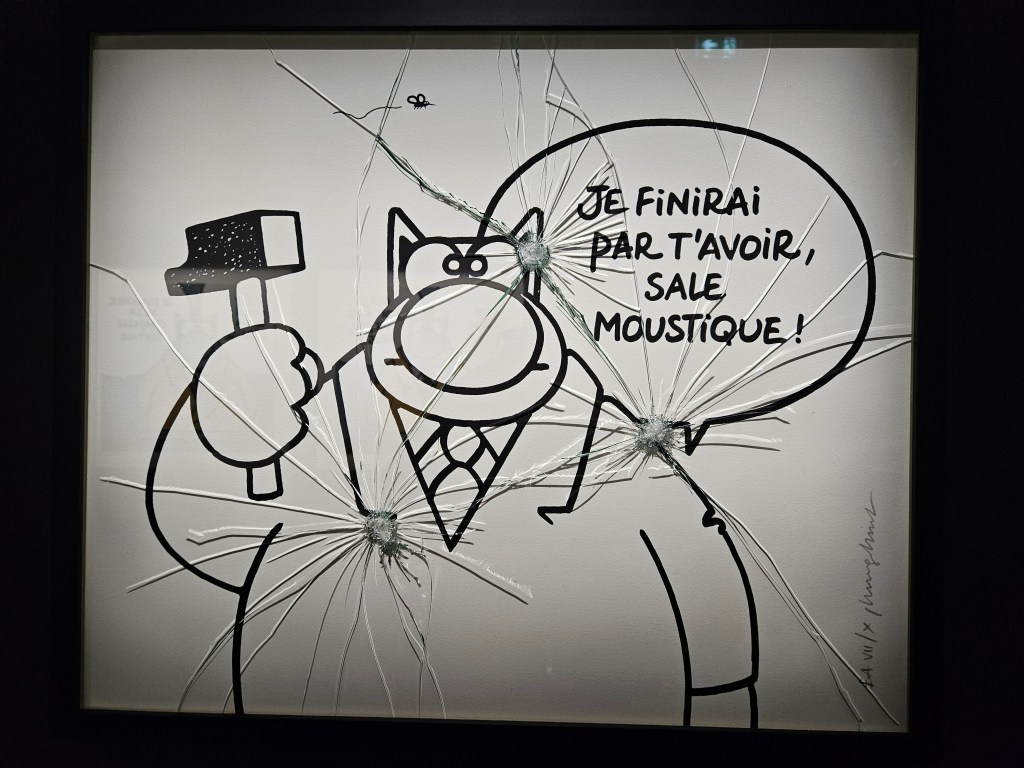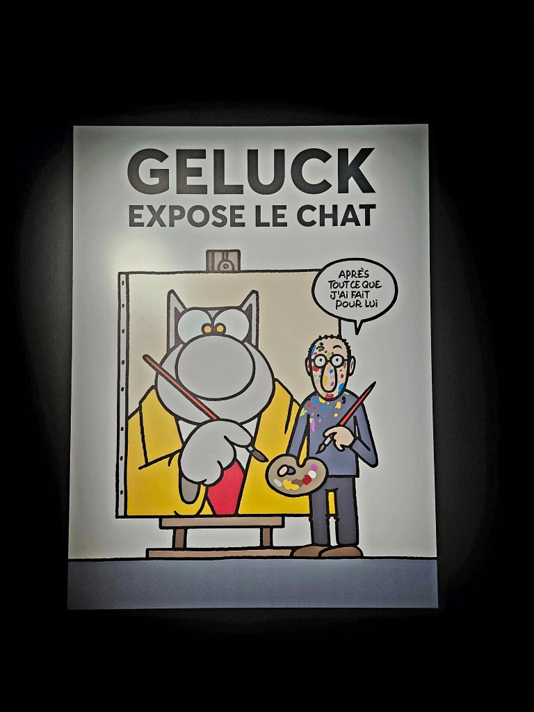 Au rez-de-chaussée, la section « L’Art et Le Chat » illustre particulièrement la patte geluckienne. Le félin dialogue avec Andy Warhol, Piet Mondrian, Soulages, Banksy… Geluck reprend l’idée de son exposition de 2016 et en propose une version nouvelle, pleine d’humour et de malice, où le Chat s’invite dans les toiles des plus célèbres artistes contemporains sans jamais se prendre au sérieux. Pour Geluck, cette démarche répond à une mission précise: faire découvrir l’art contemporain au plus grand nombre. « Il existe parfois un fossé entre le grand public et les spécialistes de l’art contemporain. J’essaye au contraire de parler à tout le monde et d’entraîner, avec le Chat, des personnes au musée ».