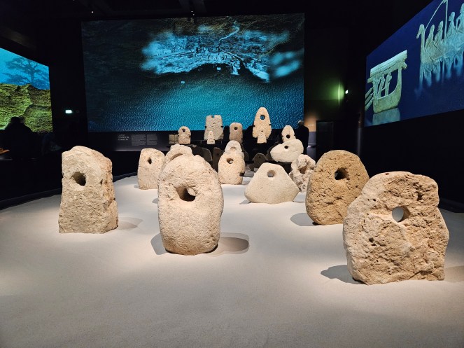 Le parcours dévoile l’épopée fascinante de cette cité levantine qui fut le premier grand port maritime international de l’histoire. Établie sur un promontoire dominant la Méditerranée, Byblos s’est imposée comme un carrefour majeur reliant l’Égypte pharaonique, la Mésopotamie et le monde égéen. Près de 400 pièces d’exception racontent cette histoire prestigieuse : de magnifiques ancres en calcaire vieilles de 5 000 ans aux somptueux colliers royaux, en passant par des armes d’apparat et des figurines votives en bronze et faïence.